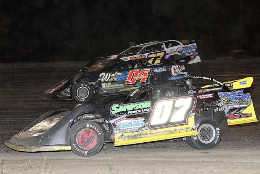 On Saturday afternoon Tad Pospisil visited Davenport Speedway (Davenport, Iowa) for the Hoker Trucking Series-sanctioned Iowa Governor’s Cup State Championship. In a field of 33 cars, Tad secured his spot into the $5,000-to-win A-Main with a heat race victory. Climing four spots in the 40-lap feature, Pospisil reeled in a runner-up finish behind Jeff Aikey with Richie Gustin, Matt Ryan, and Jeff Tharp rounding out the Top-5. (Mike Ruefer photo)