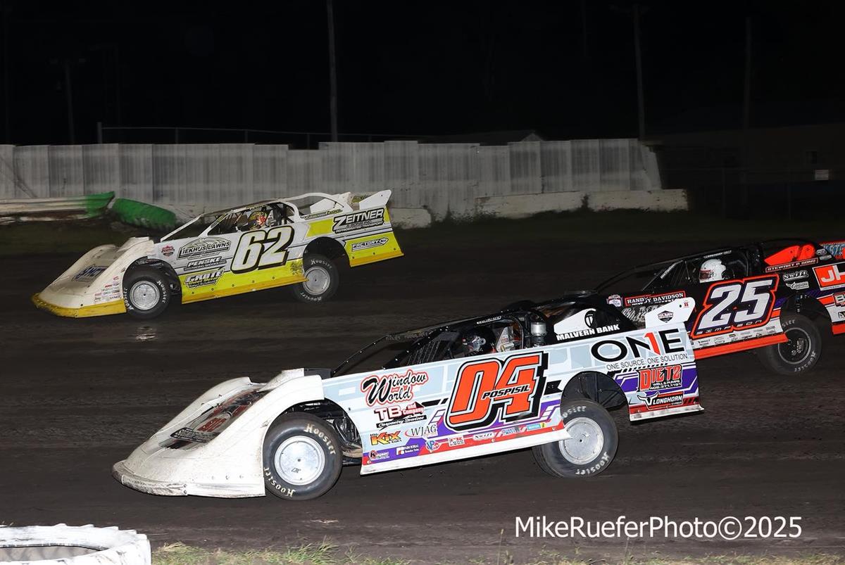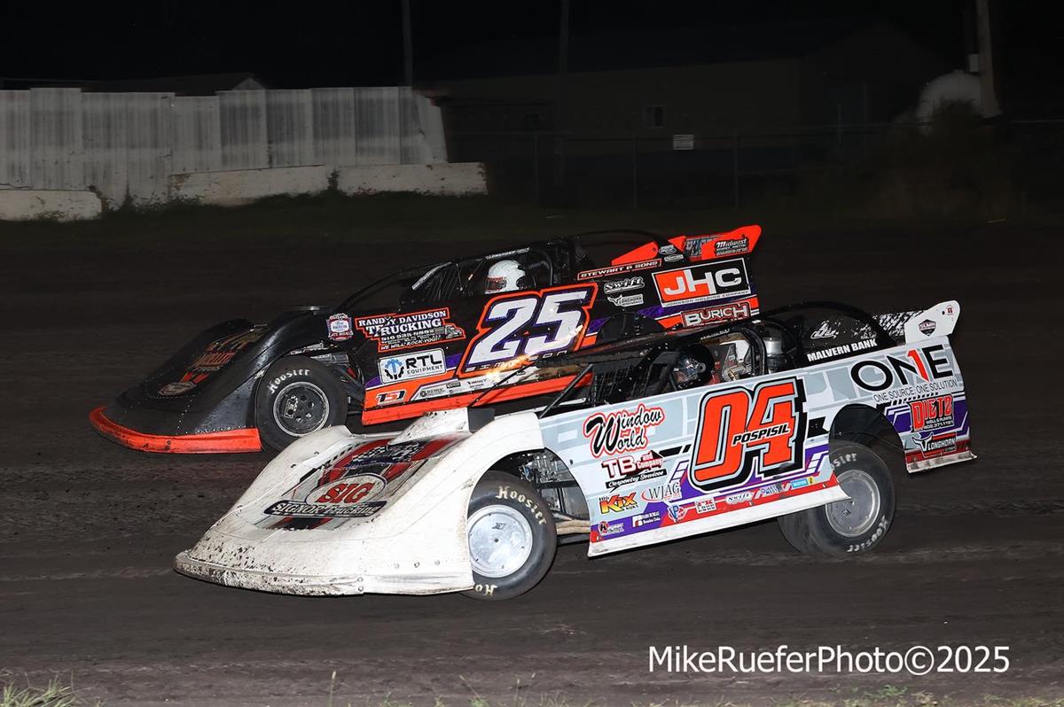 Pospisal qualified fifth-quickest in his group and ran second in his heat race which slated him to start 10th in the 25-lap feature event. Tad stormed through the field and took the top spot with just four laps remaining. Pospisil outdueled Chad Simpson and took home the $5,000 prize in the series finale.