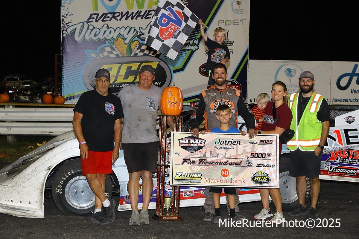 Rolling into town for the series finale, Tad Pospisal was one of 23 Super Late Models at Adams County Speedway (Corning, Iowa) on Saturday afternoon for the final race of 2025 season for the Malvern Bank East & West tours.